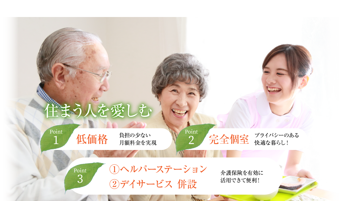 | 共有設備 | 食堂、浴室、洗面所、洗濯スペース、水洗トイレ、相談室、管理室、事務室 |